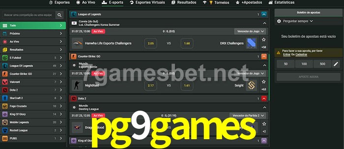 O pg9games oferece uma grande seleção de opções de apostas em e-sports com probabilidades competitivas